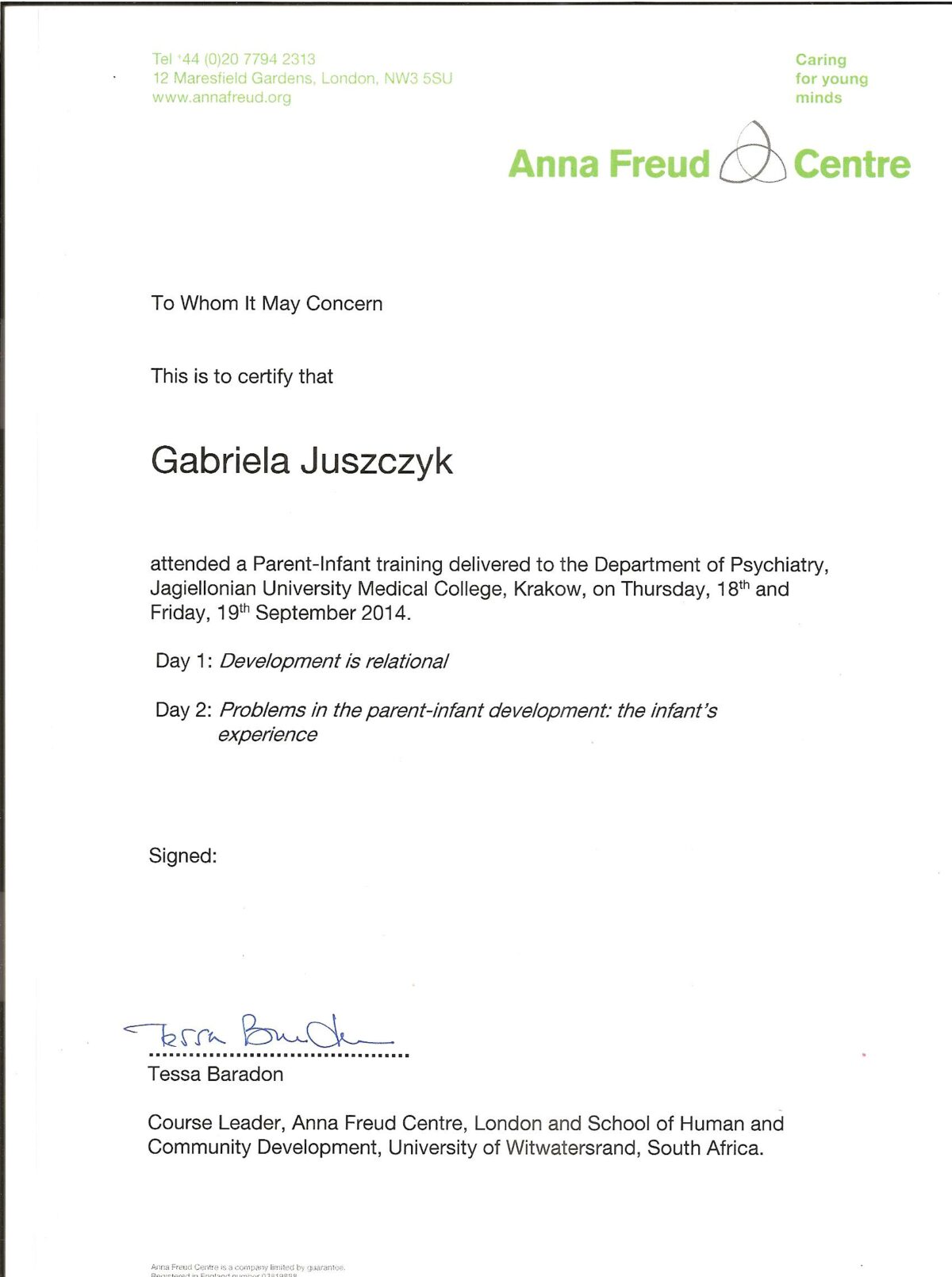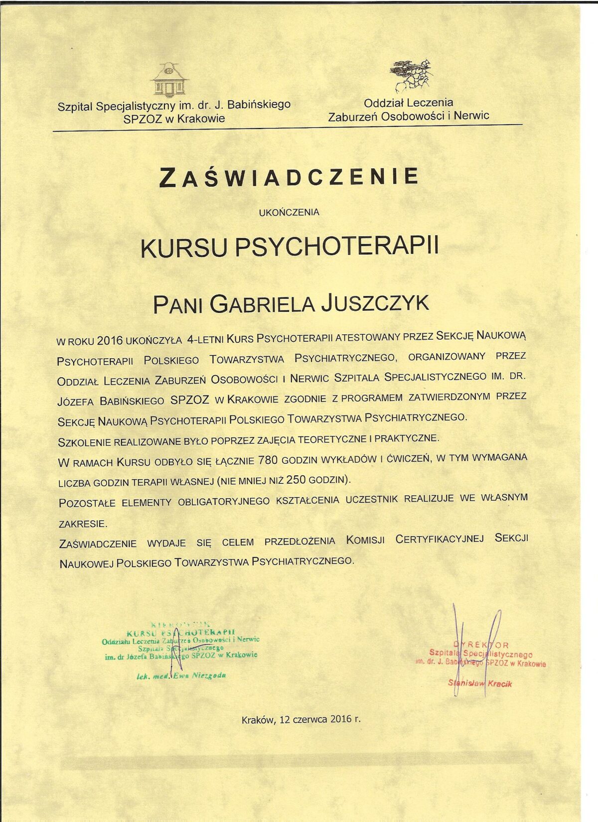 Doświadczenie zawodowe zdobywałam jako pracownik Kliniki Psychiatrii Szpitala Uniwersyteckiego w Krakowie, między innymi w: Pododdziale Zaburzeń Afektywnych – A, Pododdziale Psychiatrii Psychodynamicznej – P, Oddziale Dziennym Leczenia Zaburzeń Emocji i Nastroju, Zespole Hospitalizacji Domowej, Poradni Leczenia Uzależnień oraz w Zespole Psychoterapii Relacji Rodzic – Niemowlę. Systematyczne rozwijam swoją wiedzę podczas konferencji, warsztatów i seminariów co pozwala mi lepiej rozumieć naturę trudności emocjonalnych.